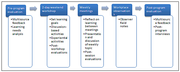 The key stages of GIPSIE are provided (Fig2). After multi-source feedback (MSF), the program began with a questionnaire-based learning needs analysis designed to ensure that program content was individualised, an important step in promoting receptiveness to learning. An immersion weekend workshop preceded 4 fortnightly evening meetings. There were 24 contact hours and an additional 3 hours of observed clinical practice. A combination of massed and distributed learning was adopted, supported by web-based, self-directed and interactive learning methods between sessions to ensure continuity and application of learning.