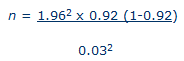 z = Standard normal deviate of 1.96 for a confidence level set at 95%