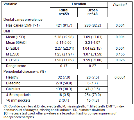 Table 2: Burden of oral disease among urban and rural antenatal women