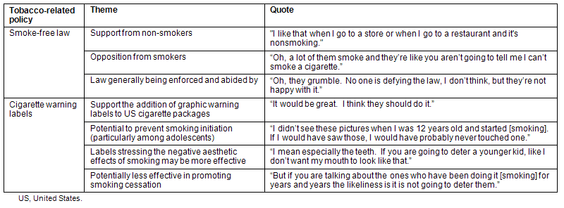 Table 2: Focus group themes concerning Ohio's smoke-free law and cigarette warning labels