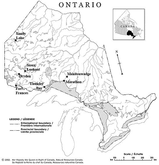 Three phases of recruitment occurred between March and October 2007 in an attempt to reach data saturation. Letters of invitation were sent to 27 potential participants. Those interested were telephoned to arrange an interview. Nineteen people from six communities within NWO participated in this study (Fig1, Table 2). Unfortunately, those who discontinued MOST-TR did not agree to participate in this study. Four of the participants were able to attend one MOST session in person, in Thunder Bay, on separate occasions.