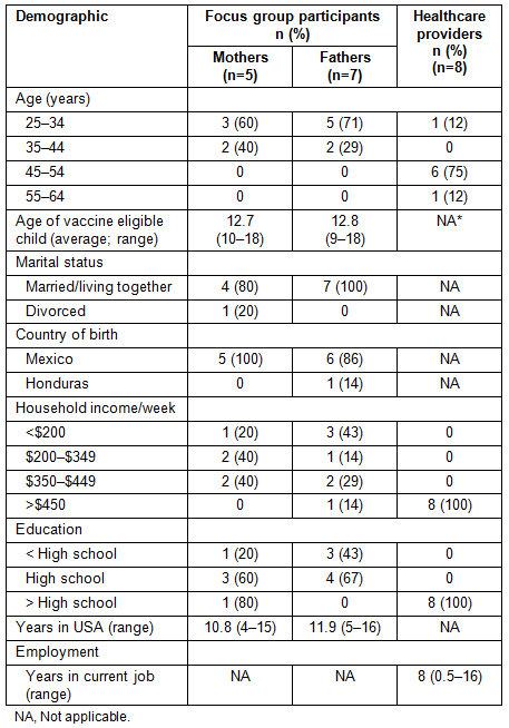 Table 1: Demographics of focus group participants and healthcare providers