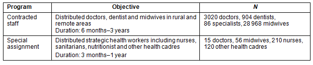 The Indonesian Government has implemented policies to support the recruitment and deployment health workers in rural and remote. These include compulsory service, contracted staff and Special Assignment.