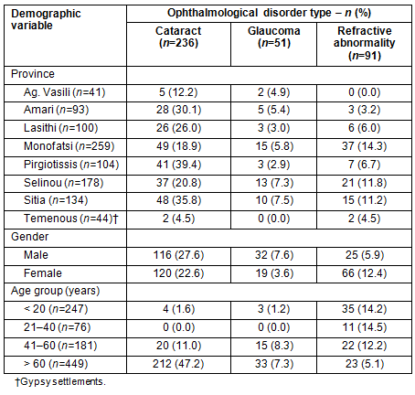 ophthalmological disorders, province in Crete, gender and age