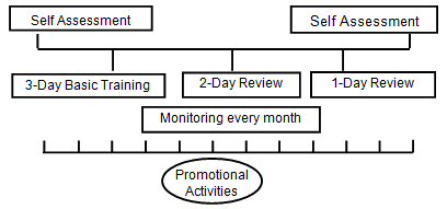 The program aimed to foster good governance in health facilities by empowering and building the capacity of the HFOMCs, through training and monitoring/follow up. Building on the lessons from the past experiences of different organizations14,15, the program approach focused on capacity building of HFOMCs as a continuous process.