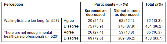Perception of waiting lists as too long, lack of mental health professionals and depression