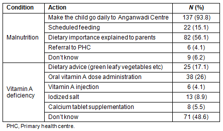 Table 3: Preventive actions taken for malnutrition and vitamin A deficiency