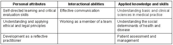 The overall design of the curriculum was appreciative of the limitations associated with focusing on competences (or, what individuals know to do in terms of knowledge, skills and professional behaviours) alone. Tomorrow's doctors need a much wider array of capabilities (the extent to which individuals actually perform, can adapt to change, generate new knowledge, and continue to improve, extend and adopt their performance) to be part of the evolving approach to health care based on the concept of health-care teams (Table 2). In addition, tomorrow's doctors need to be mindful of their economic responsibilities to their patients, the health-care team and the economy at large4.