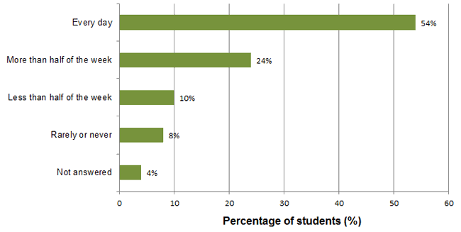 Despite only half of students participating in the snack program on the day of the second data collection, 78% students reported that they usually participate in the school snack and breakfast program more than half of the week or every day (Fig2).
