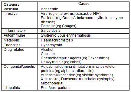 Table 1: Causes of dilated cardiomyopathy according to a surgical sieve