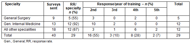 Table 1: Response rate and year of training