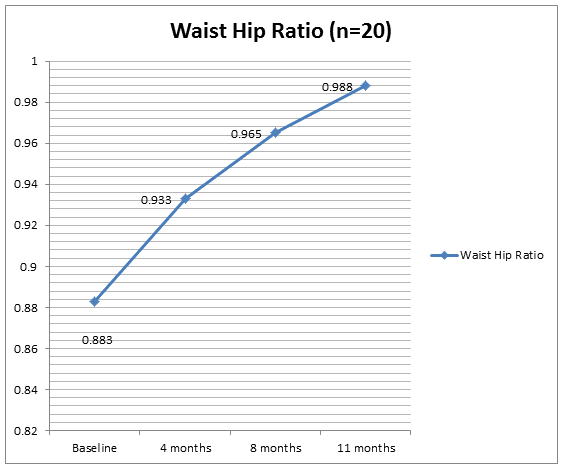 The mean age of the 20 male team members was 39 ± 10.2 years. At baseline, eight (40%) were overweight, five (25%) were obese, two (10%) were underweight and only five (25%) had a body mass index (BMI) in the normal range (Fig1). We noted a progressive rise in the mean BMI during the expedition, the average weight gain being 1.2 kg in the first quarter, 1.3 kg in the second quarter and 0.6 kg in the third quarter. Of the subjects who subsequently developed biliary disease, three out of six (50%) were clinically obese at baseline, although their initial BMI was not significantly different from those who did not develop GD (p=0.092). At 3 months, however, these six subjects had a significantly higher BMI than those without GD. There was an increasing trend in the mean waist : hip ratios and a corresponding increase in the body fat percentage, while the lean body mass remained relatively constant (Fig2).