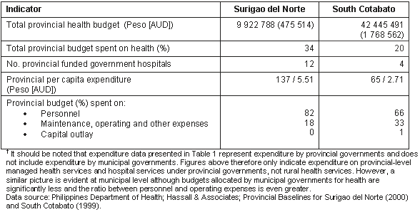 Table 1: Indicators of Provincial expenditure on health, Surigao del Norte and South Cotabato, the Philippines, 1998?