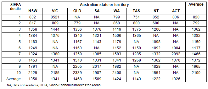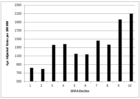 removal of impacted teeth in each Socio-Economic Indexes for Areas (SEIFA) decile in Australia.