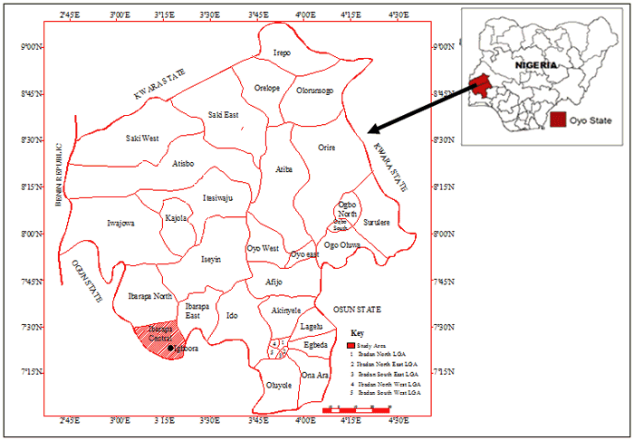 Figure 1: Map of Ibarapa Central Local Government Area, Oyo State, Nigeria.