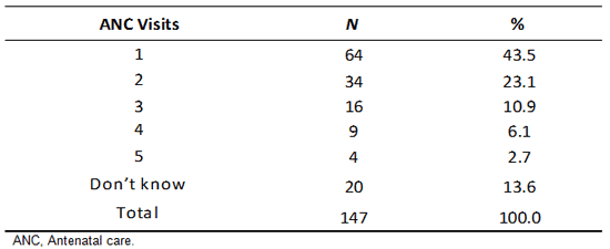 Table 2: Frequency and percent distribution of pregnant women by number of antenatal care visits during current pregnancy