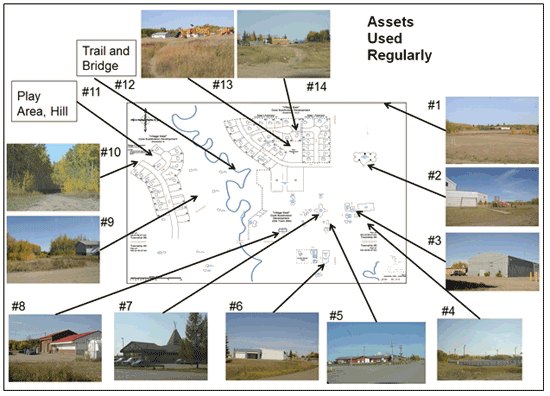Figure 1: Places and spaces used regularly by children and youth in Alexander First Nation.