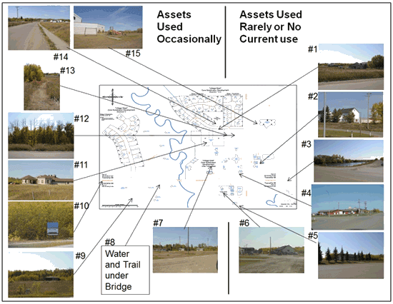 Despite extensive probing about the larger reserve and having a map of the reserve available to prompt discussion, participants only identified a pond and the campground beyond the town site as places where there was potential for activity. Indeed, one elementary student stated 'And the most part where we hang out is.. .in the town site.' When asked why, the respondent said, 'Because it's fun and there's lots of places you can go ...trail in the bushes and you can go under the bridge...'