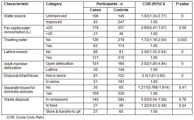 Table 2: Environmental factors related to acute diarrhoea among study participants in Derashe District, South Ethiopia, 2012