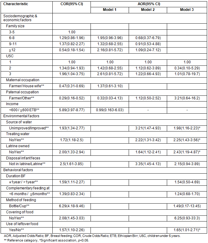 Table 3: Behavioral factors associated with acute diarrhoea in bivariate analysis, Derashe District, south Ethiopia, 2012