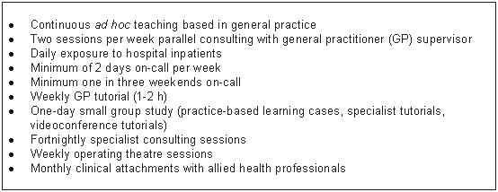 As a consequence of the partnerships with the above mentioned general practices and hospitals, seven year-3 graduate-entry medical program students were based in the GGT in 2002. Their learning program was based on the Riverland model (Fig 1).