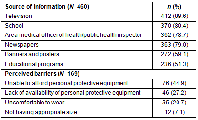 Table 3: Sources of information about leptospirosis and perceived barriers