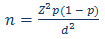 Z = standard normal deviation for specified alpha error, usually set at 1.96 which corresponds to 95% confidence limit, alpha error considered as 5%