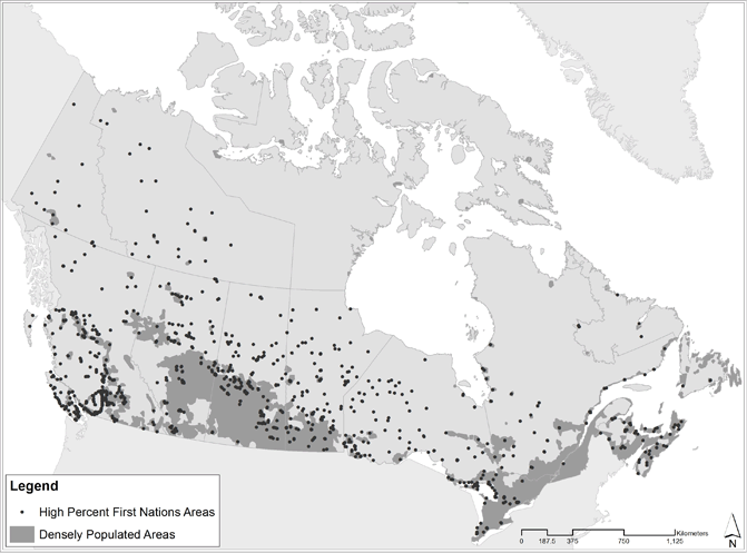 Figure 1: High-percentage First Nations identity areas, 2006.