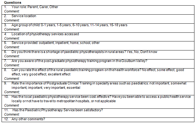 Appendix B: 'Building capacity in the rural physiotherapy workforce: a paediatric training partnership': parent survey