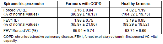 Table 1: Lung function values in farmers with chronic obstructive pulmonary