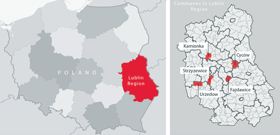 Figure 1: Patients and healthy study participants recruitment: map of Lublin region and five rural communes.