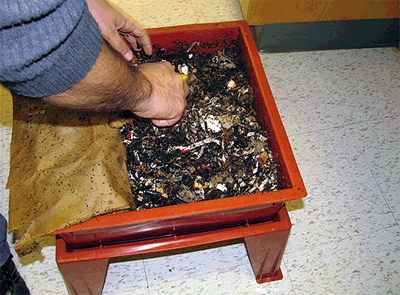 Figure 4: A worm compost maintained by the high school science teacher. Compost was collected in classrooms and the cafeteria and fed to the worms. The worm compost was used as a teaching tool for the high school students. (Photo taken 30 September 2011.)