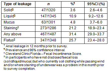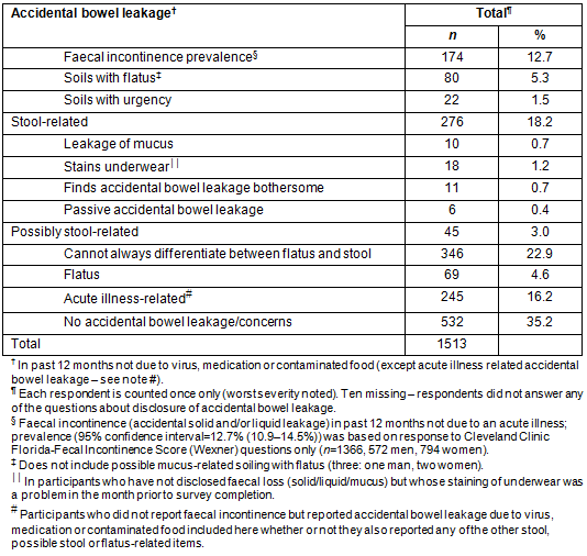 Table 1: Respondents' disclosure of accidental bowel leakage