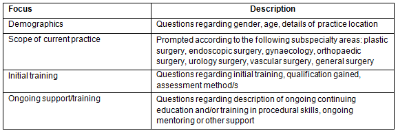 Participants were identified through the Rural Doctors Workforce Agency (RDWA) database. This database indexes all rural GPs in SA. Twenty-three self-described GP surgeons were identified. A GP surgeon was defined as one who undertakes non-obstetric procedures, and who may undertake gynaecological procedures. This group was contacted by email and invited to participate. Participants were excluded if they were not currently practising.
