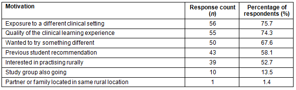 Table 2: Motivations for entering the Rural Clinical Training and Support program