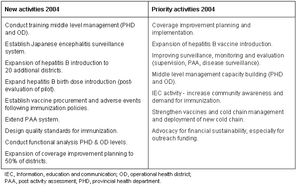 Table 2. New and priority activities of the National Immunization Program (NIP) 2004-2006
