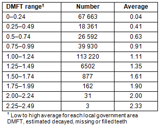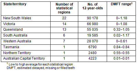 Table 1: Decayed, missing or filled teeth ranges for statistical regions in each Australian state/territory