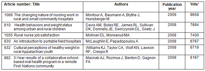 Table 1: Six most frequently accessed North American Rural and Remote Health articles since May 2008