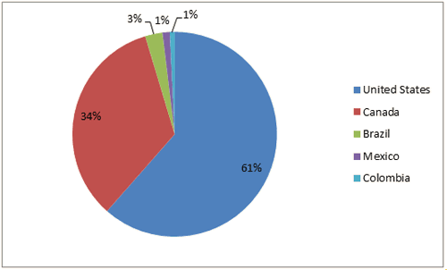 Figure 1: Country origin on American continent of site visitors, 2012-2013.