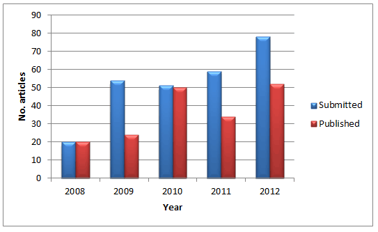 Figure 2: Manuscripts submitted to and published in the North American Regional Section, 2008-2012.