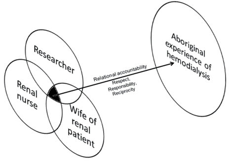 I am not only a nurse and researcher, I am also (coincidentally) the wife of a man with renal disease facing a future on dialysis. The overlapping of my three roles in this research demanded alignment of the lenses through which I viewed people requiring dialysis. The multiple positions from which I viewed this research and how I approached the participation of Aboriginal people posed ethical, cultural and methodological challenges. These challenges prompted me to develop a deeply reflexive approach as I balanced my relationship to the research and the participants and health services (with whom I am still employed as a clinician).