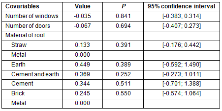 Table 4: Relation between the mean number of collected Anopheles and the covariates (multivariate regression)