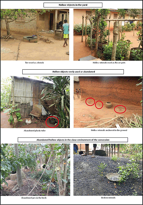 - potential egg-laying sites in terms of the availability of stagnant water. Grid variables included latrines, showers, rainwater recycling systems, hollow objects, palm factories, uncontrolled dumpsites, kitchen gardens, tanks and asperities in the ground (Fig2)