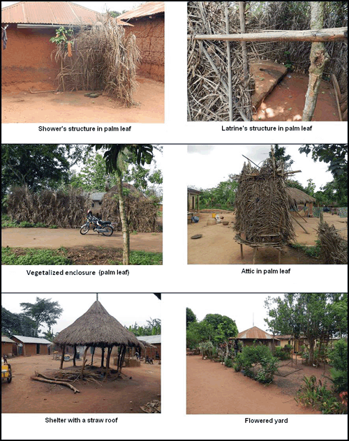 The third household type (n=11) refers to a higher socioeconomic level of living; 82% of these concessions are enclosed by a fence. These exterior walls insulate the courtyard of the concessions, sometimes planted with ornamental species, from the public space. Houses with metal roofs are mostly made of hard materials (73%). A total of 55% of these households are equipped with one or two tanks covered permanently in 67% of cases. The outdoor showers are mainly walled (55%). Outdoor kitchens are all equipped with metal or straw roofs. Type 3 households seem less favourable to the development of vectors because the possibility of resting or egg-laying sites is smaller. Therefore, the walls of various elements of the home may not be conducive for the vector to rest. The living spaces are also closed off. Showers, latrines and tanks cannot be used as egg-laying sites because they have roofs.