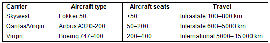 Table 1: Carrier, aircraft and travel information used for air travel carbon calculator11