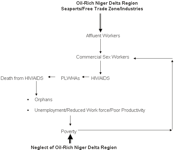 Figure 2: Cycle of neglect, poverty and HIV/AIDS infection in oil-rich Niger Delta Region of Nigeria.