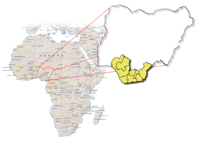 Figure 1: Map of Federal Republic of Nigeria in African continent, showing the 9 states of the Niger Delta Region.