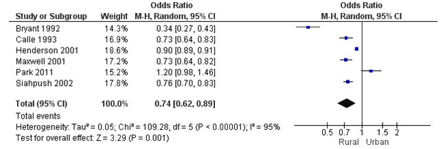 Figure 4: Meta-analysis results of 'up-to-date mammogram' between the rural and urban populations.