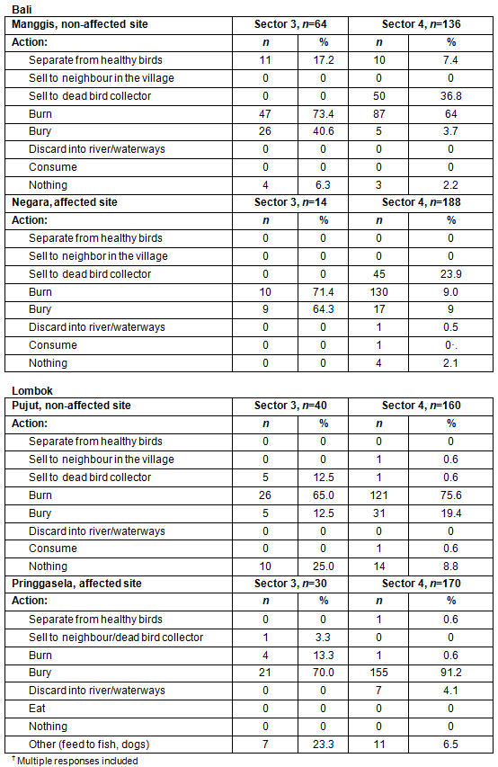 Table 3: Dead bird management across affected and non-affected sites on Bali and Lombok?