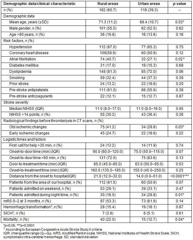 Table 1: Clinical characteristics of the subgroups of thrombolytic patients from rural and urban areas